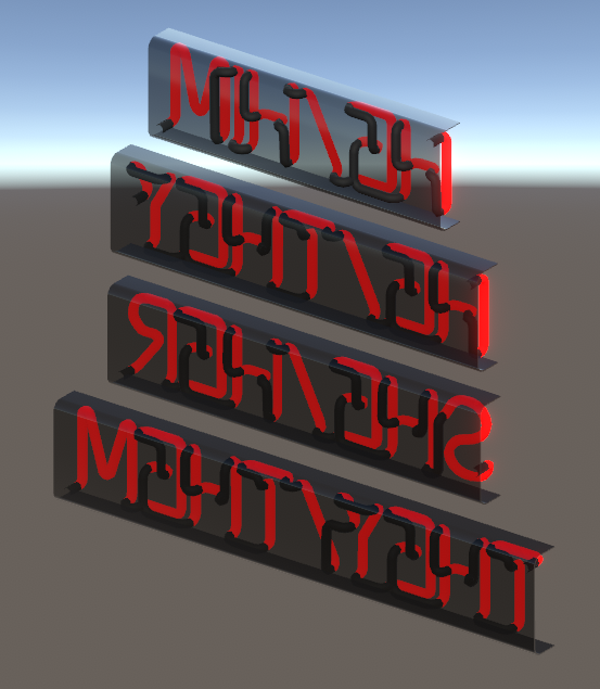 - Video above shows 2 different UV options, UV1 is top sign and UV0 is bottom sign. Your shader should have the option to choose UVs if you want have some sort of scrolling/panning effect on your sign.