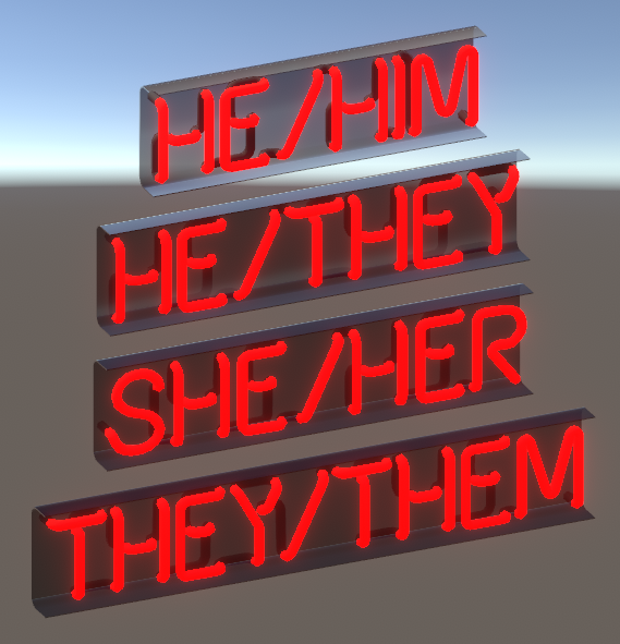 Some neon signs you can put on a toggle above your head in VRC if you're tired of people misgendering you.